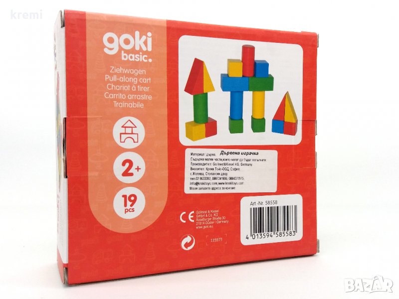 Играчките Goki са част от една от най-големите компании в Световен мащаб за произвеждане на играчки, носеща името на своите основатели, "Gollnest & Kiesel". Превърнали се в знак за високо качество на приемливи цени, компанията и до ден днешен е лидер на пазара за играчки. Създадени с много любов, играчките са произведени в Германия, повечето от които на ръка. За изработката им се използват - клен, бук и орех. Останалите материали са без никел и метали, дори боите са висококачествени и нетоксични.