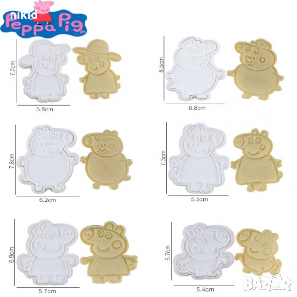 6 бр Пепа Пиг Пеппа Peppa Pig пластмасови разглобяеми резци форми фондан тесто бисквитки → Обява 29049263