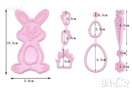 10 бр Великденски заек яйце трева балон морков пластмасови резци форми украса фондан торта декор → Обява 29049290