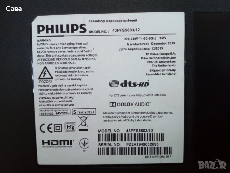 TV PHILIPS 43PFS5803/12 на части, снимка 1 - Части и Платки - 29050595 TV PHILIPS 43PFS5803/12 на части, снимка 2 - Части и Платки - 29050595 TV PHILIPS 43PFS5803/12 на части, снимка 3 - Части и Платки - 29050595 TV PHILIPS 43PFS5803/12 на части, снимка 4 - Части и Платки - 29050595 TV PHILIPS 43PFS5803/12 на части, снимка 5 - Части и Платки - 29050595 TV PHILIPS 43PFS5803/12 на части, снимка 6 - Части и Платки - 29050595 TV PHILIPS 43PFS5803/12 на части, снимка 7 - Части и Платки - 29050595 TV PHILIPS 43PFS5803/12 на части, снимка 8 - Части и Платки - 29050595 TV PHILIPS 43PFS5803/12 на части, снимка 9 - Части и Платки - 29050595 TV PHILIPS 43PFS5803/12 на части, снимка 10 - Части и Платки - 29050595 TV PHILIPS 43PFS5803/12 на части, снимка 11 - Части и Платки - 29050595 1/11