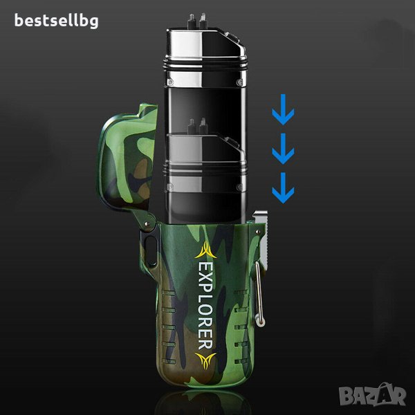 Стилна луксозна ветроустойчива водоустойчива акумулаторна електронна запалка на ток Explorer ZC116, плазмена запалка с двойна волтова дъга безопасна, надежднаи и включване чрез бутон зареждаща се с USB тип Тесла zippo противовятърнa. Запалка на ток подходяща за цигари, къмпинг, туризъм, лов, риболов, пурети, лула, пури, подарък, палатка и др.