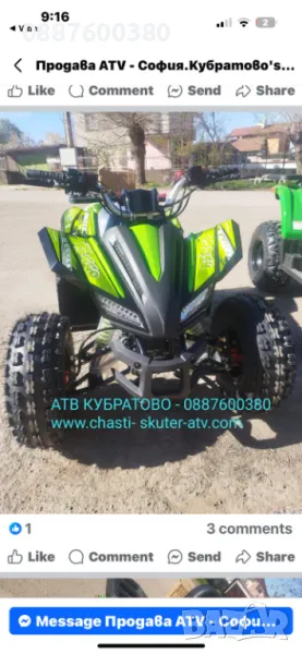АТВ КУБРАТОВО ви предлага богат АСОРТИМЕНТ от НОВИТЕ МОДЕЛИ на бензиновите АТВта , които се различават както по дизайн така и с по-високо качество. АТВ КУБРАТОВО ви предлага богат АСОРТИМЕНТ от НАД 60 МОДЕЛА НАЛИЧНИ с покриване на всички възрастови категории 50сс,110,125,150,200,250,300-350сс на цени от 550 лв до 4600лв с ДДС.Тел./Вайбър за коректен съвет и въпроси.