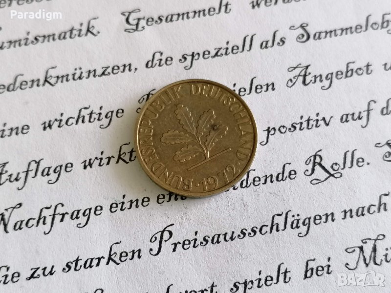 Монета - 10 пфенига от 1972г.; серия J