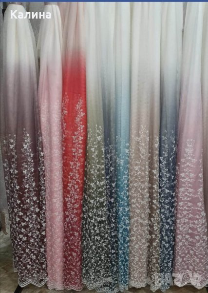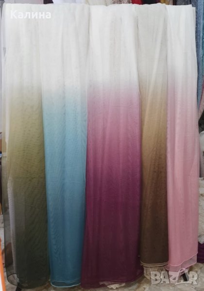 Пердета Омбре-изчистени-6,50€ л.м.,с бродерия- 7,50€ лв.за метър ширина.Дължина на платовете-2,80м.Материя-тюл.За комбинация с плътни завеси,моля разгледайте другите ми обяви!Изпращам с Еконт и Спиди в цялата страна.За повече информация, моля позвънете или пишете на Вайбър!Приемам поръчки 7 дни в седмицата!тел.0896100520