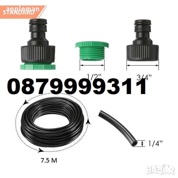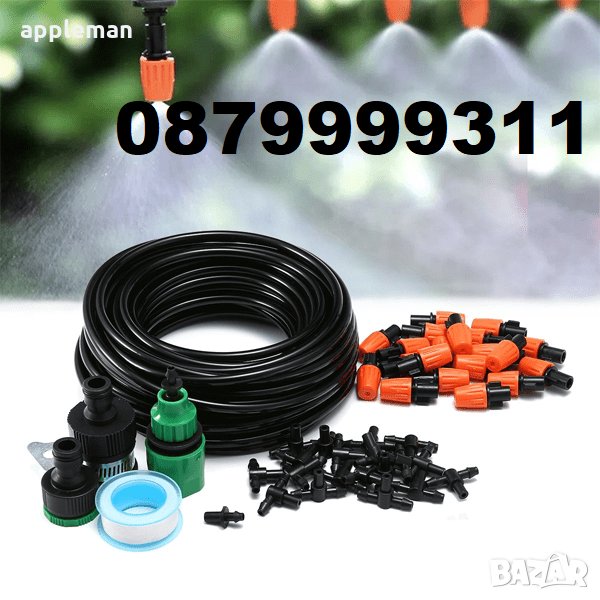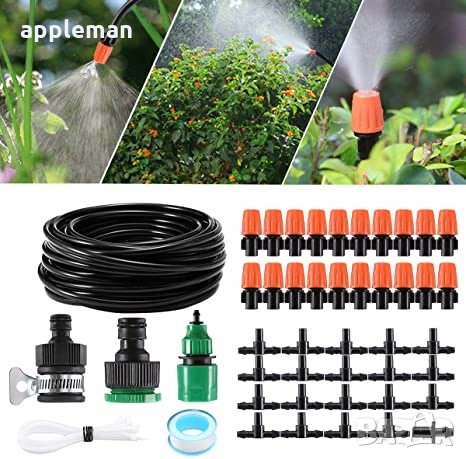 Приложение: Лесен монтаж и демонтаж. Подходяща за градини, тераси, чадъри, балкони и други. Намалява температурата с до 11°. В комплект с конектор и адаптор за маркуч.