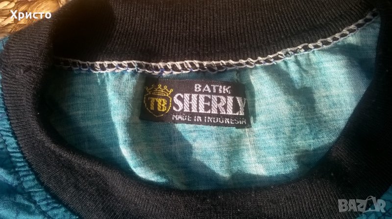 Продавам тениска рисувана ръчно по технология Батик внос от Индонезия, чисто нова. Нежен мек памук, донесена лично от мой приятел-пътешественик. Разстояние под ръкавите 57 см, дължина ръкав горна част 28 см, гръб от яка до долен ръб 77 см. Уникална находка за ценители. Има 2 цепки в долната част. Гръб и лице рисунките са еднакви.
