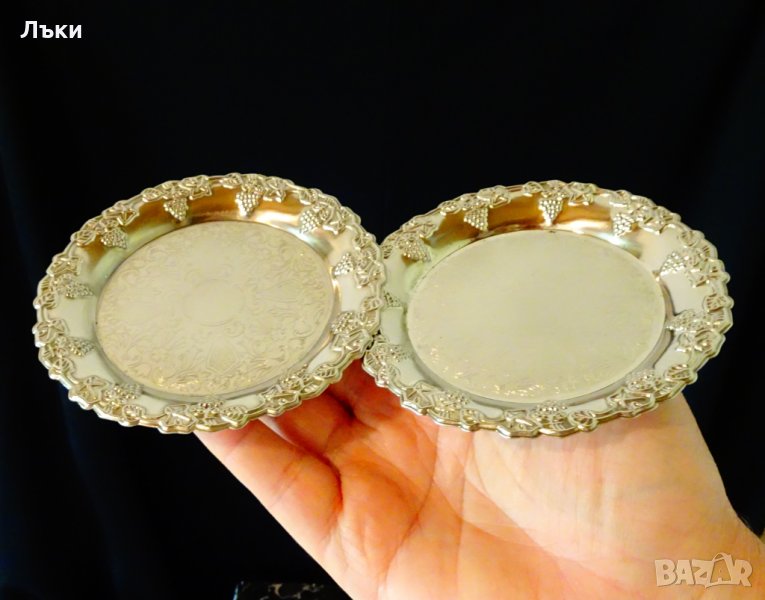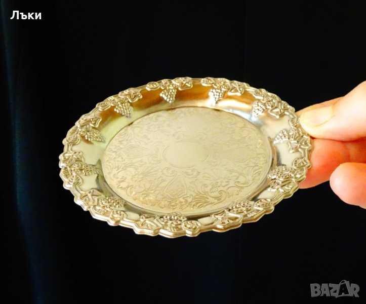 красива лоза с грозде.Чудесен завършек на всяка чаша,каничка или свещник.Височина 1 см.,диаметър 10 см.,тегло на всяка 30 гр.Имам общо 2 броя,цена 7 лв.,за брой.