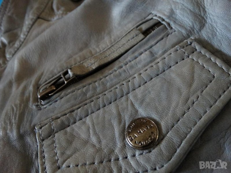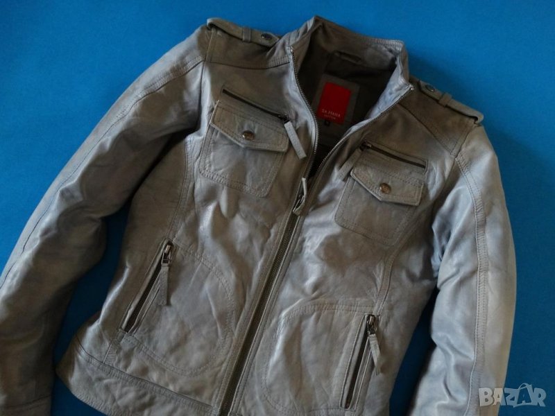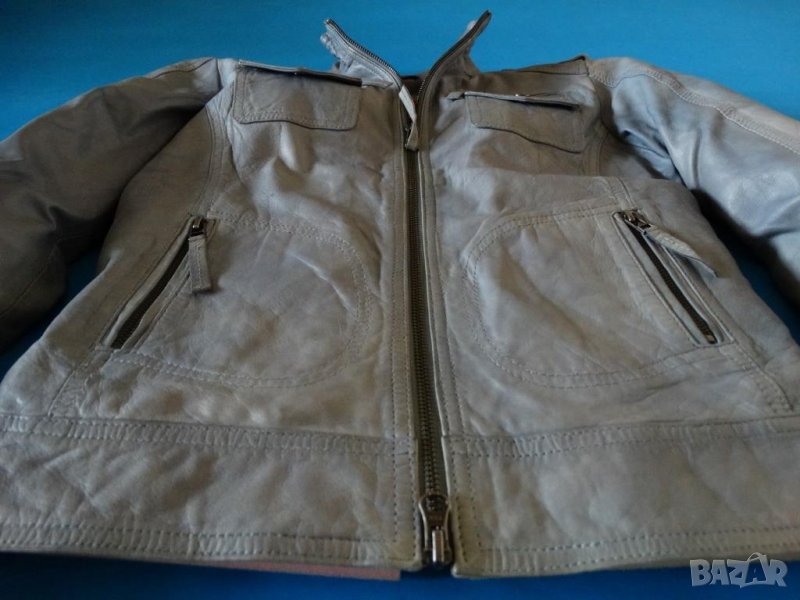 Ново, неносено без етикет. Мека и финна естествена кожа със състарен ефект - преливаща сива гама от по-тъмно и по-светло навсякъде. Много джобчета с ципове и вталена съвършенна кройка. Удобство и комфорт при носене. Дължина от рамо - 58 cм, от рамо до рамо - 38 см, от подмишница до подмишница - 45 cм, дължина на ръкав от рамо - 64 см.