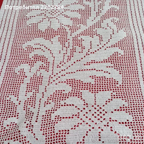 Второто перде е за долната част на прозореца и се нанизва.На много красиви цветя камбанки.Без забележки.Размери 50/120см.