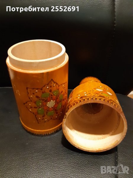 Ръчно изработена дървена бутилка Пирографирана и изрисувана. Височина-14см.