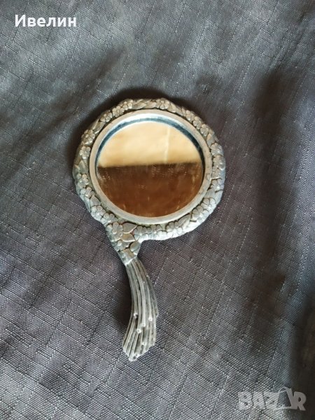 дамско огледало арт деко.метален корпус с дължина 13см,диаметър на огледалото 5см.