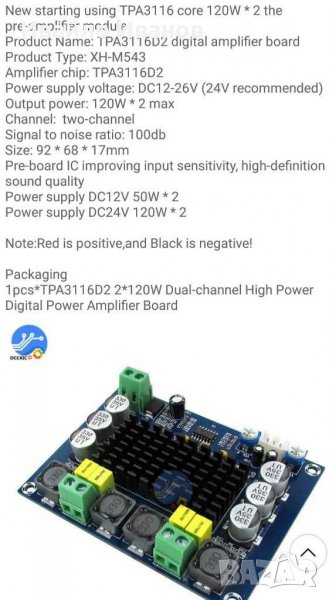 сн.4,10 - 2x120W/DC24V chip TPA3116D2 - # няма налични в момента