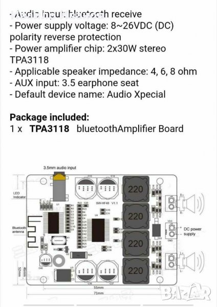 сн.6,12 - 2x30W chip TPA3118/bluetooth/aux - 30лв.
