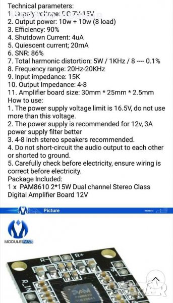 сн.3,9 - 2x15W chip PAM8610 - 10лв.