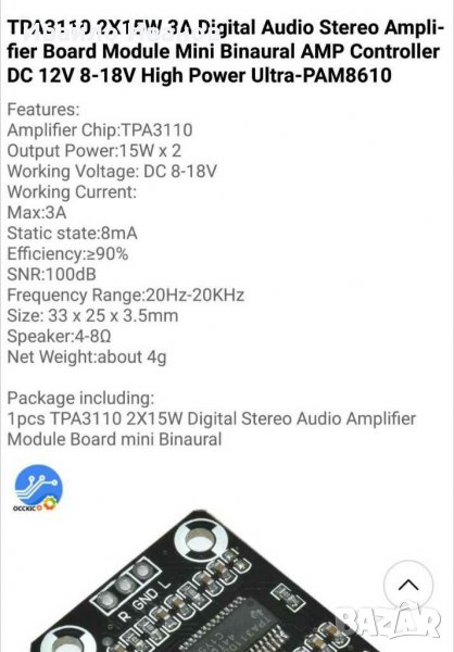 сн.1,7 - 2х15W chip TPA3110 -10лв.