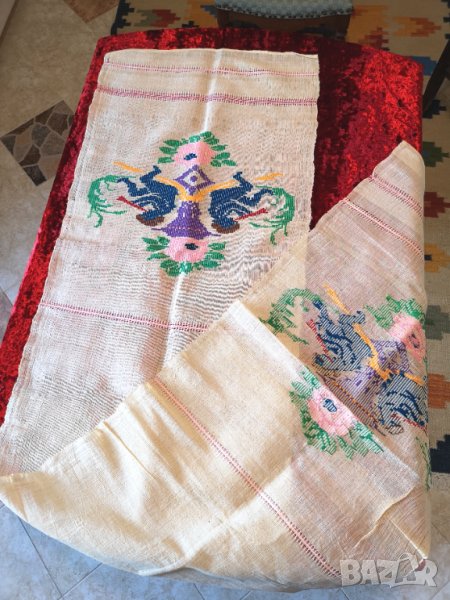 Предлагам на Вашето внимание великолепна много голяма автентична кърпа/месал от много фин ръчно тъкан ленен