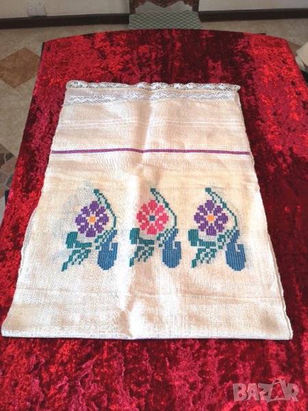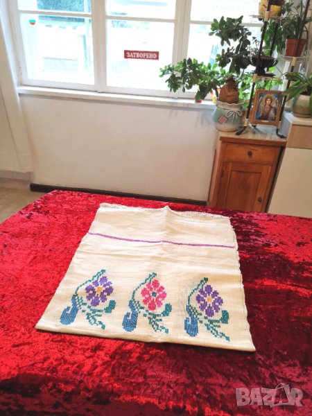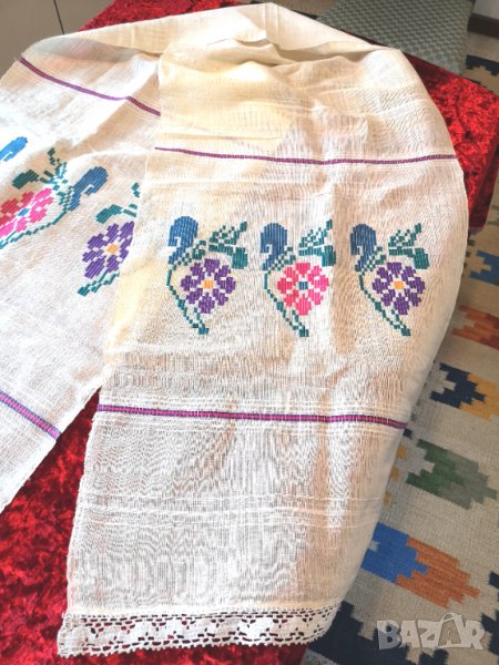 Предлагам на Вашето внимание великолепна, много голяма автентична кърпа/месал от много фин ръчно тъкан ленен кенар, ръчно бродирана лично от една от най големите русенски красавици през 20- те години на миналия век - Славка Капнилова.