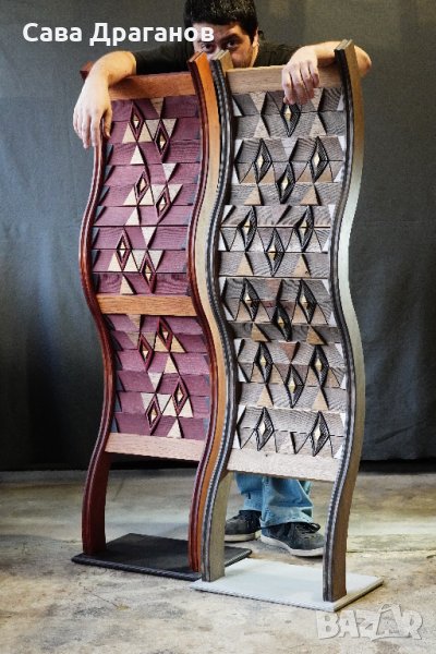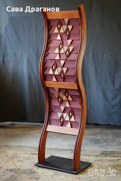 Скулптура от дърво "Червеният килим" Изработен от дъб и брезов шперплат за рамката. Размери 1420/430/290мм.