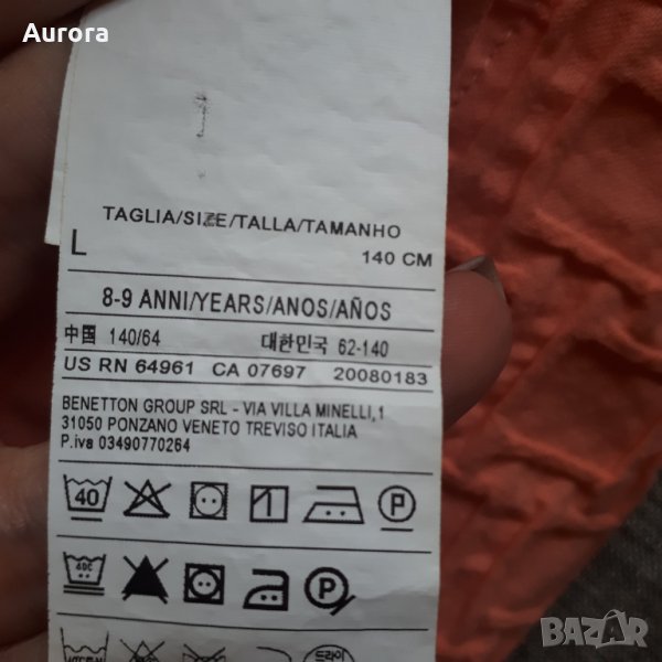🦋 Benetton вафлена рокля/ туника, размер 8- 9 год. Материята има еластичност. Шир. подмишн. 38.5 см, дълж. в средата 68 см. Отлично запазена.