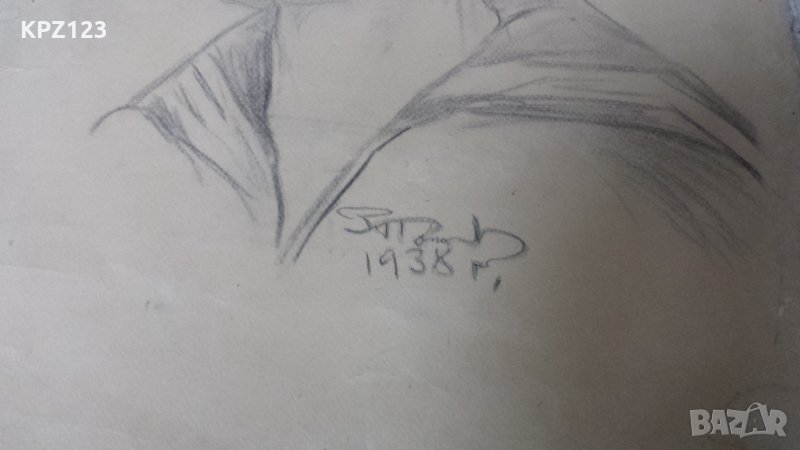 Много стара рисунка портрет подписана, датирана 1938 година