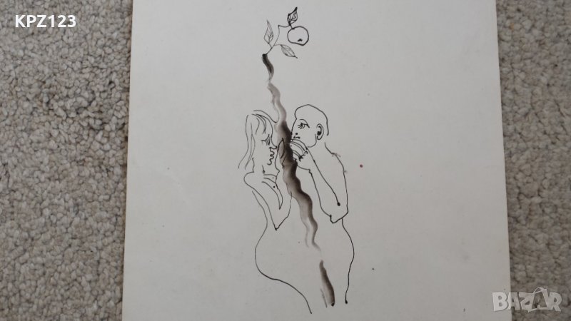 Картина "Адам и Ева" от известния български художник Пламен Капитански, надпис на обратната страна на картината.