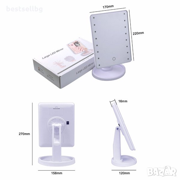 LED огледало за грим с осветление с място за аксесоари