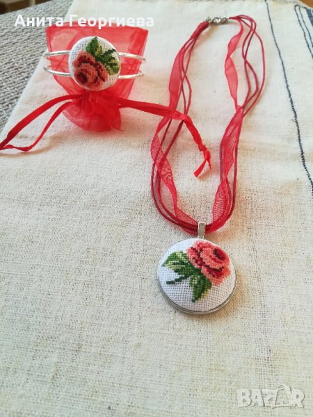 Ръчно бродирани бижута с цветя , флорални мотиви , колие , гривна и обеци → Обява 29090525