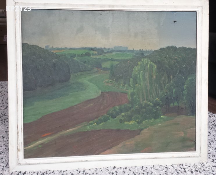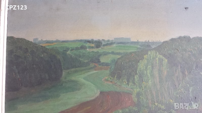 Много стара картина пейзаж, неизвестен автор с датировка около 30-те години на миналия век. Има повреда на платното, вижте снимките.