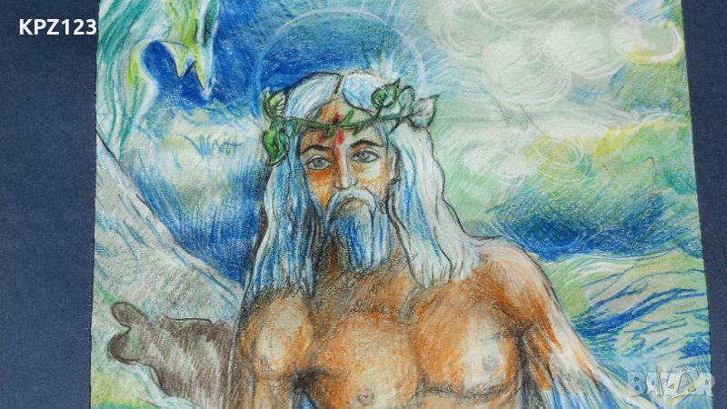 Картина с паспарту изобразяваща "Създателя", подписана (долу дясно), не успях да разчета подписа.