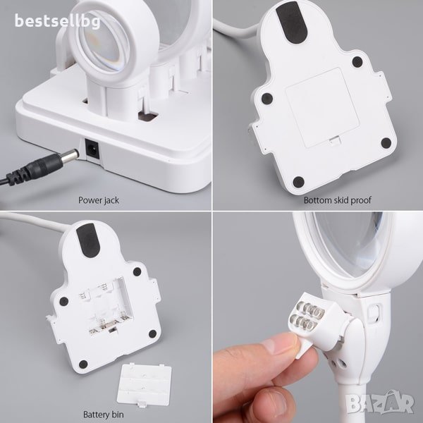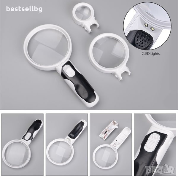 Дръжка за ръчна лупа с осветление: 2 броя LED