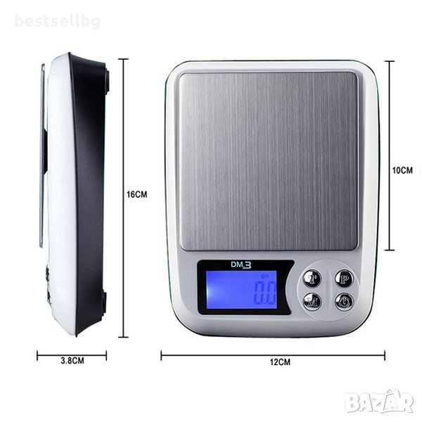 Mного точна професионална компактна дигитална електронна везна до 500 грама с точност до 0.01 цифрова с голям дисплей и цифри за измерване на злато, сребро, скъпоценни камъни, бижута, лекарства, добавки, храна, монети, метали, барут, багаж, кухня, грамове, магазин, търговска, багаж, теглене, ресторант, сладолед, дома, готвене, кафе, и др. DM.3