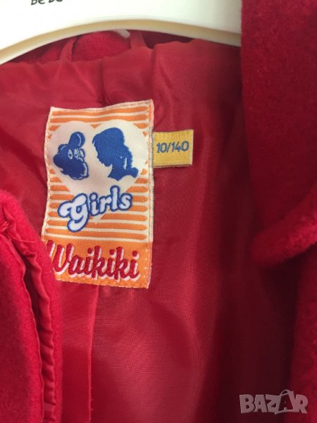 Детско палто LCWkiki, за 10г./140см. Елегантно и топло. Състав: 80% вълна 20% полиамид. Леко разкроено, отзад с плоха. Носено два пъти и изпрано, много запазено, без забележки. Размери: дължина 68см, рамо 10см, от рамо до рамо 35см, ръкав 47см, отдолу 120см, разпънато от край до край 148см.