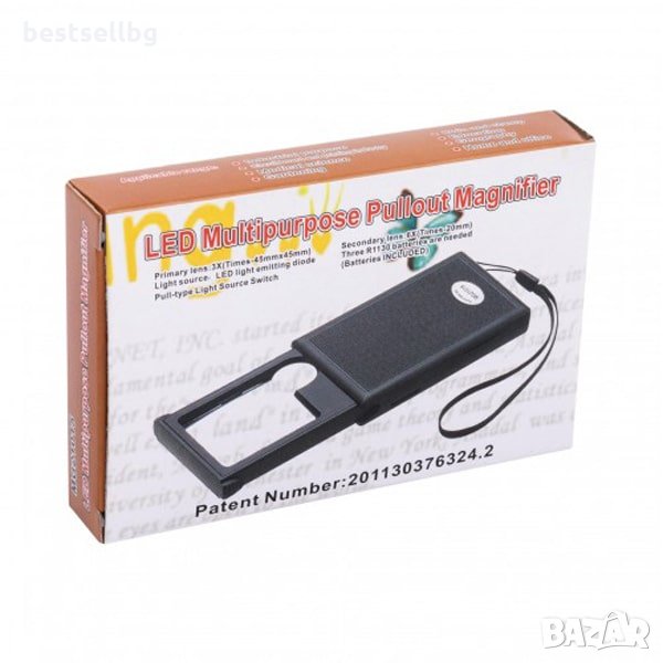 Издърпайте внимателно лупата и ще се включи LED светлина