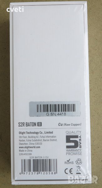 • Тяло от медна сплав. Pазмери 100mm х 23mm, тегло 162g с батерията.
