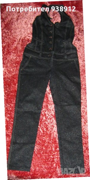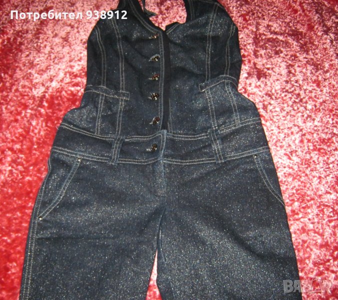Дамски стилен гащеризон, размер XS, дължина 116см. Материята на гащеризона е с пясъчен ефект. Носен е за кратко.