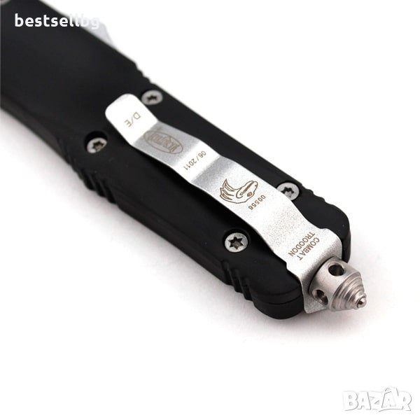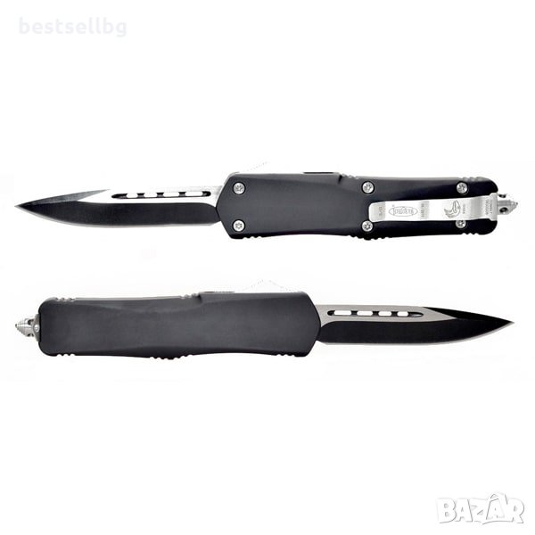 Автоматичен нож с единично острие MICROTECH SINGLE FRONT Micro Cutting Tools проектиран за оцеляване, самоотбрана, самозащита, палатка, охрана, кола, къмпинг, лов, риболов, туризъм, тактическа употреба с автоматично отваряне и затваняне