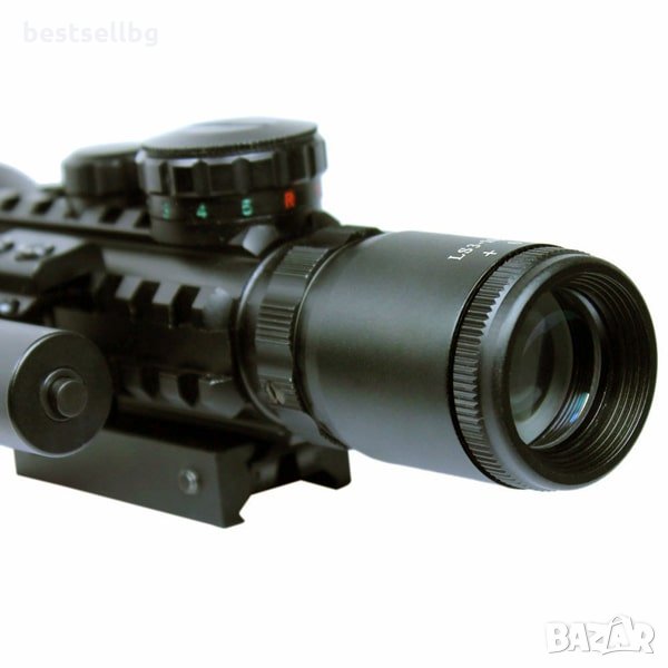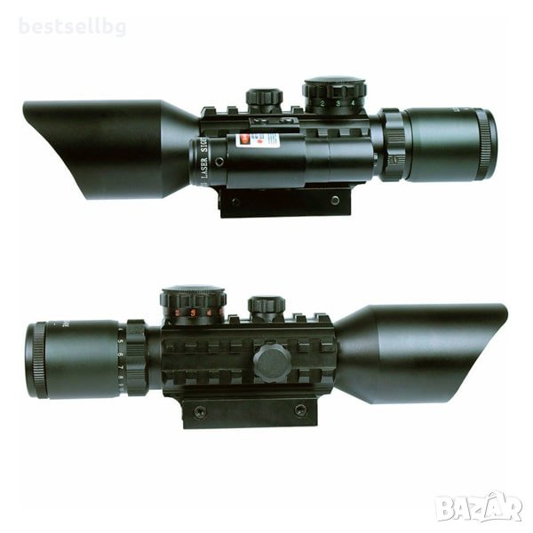Бързомерец оптически мерник прицел оптика за оръжие M9 3-10x42 с плавно приближаване и увеличение от 3 до 10 пъти, избор на червен или зелен мерник с регулиране на яркостта и червен лазер бързомер за еърсофт, пистолет, въздушна или ловна пушка