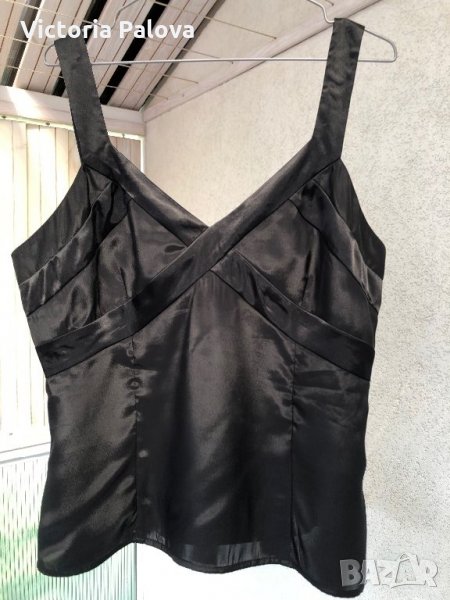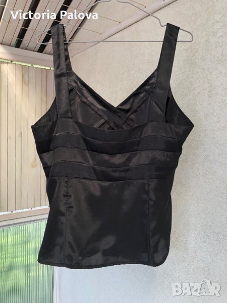 Неизползван,но е изпран.идеален е за момичета с по-голям бюст,красив и качествен,отстрани има цип.гръдната обиколка е 47см под бюста,долу ширината е 54-55см,дължината с презрамката е 61см.