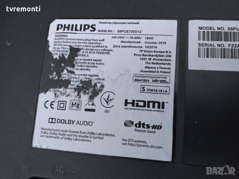 MAIN BOARD 715G8579-MOE-B01-005K (WK: 1748) дънната платка на Philips от 55PUS7303 / 12 715G8579-MOE-B 01-005K (WK: 1738) 704TQHPL453 ЗАХРАНВАНЕ 715G9309-P01-000-003S 715G9309-P01-000-003S ЗАХРАНВАНЕ ЗА PHILIPS 55PUS7303 / 12 панел TPT550U2-EQYM6.G rev SM6F тествана от нашия техник
