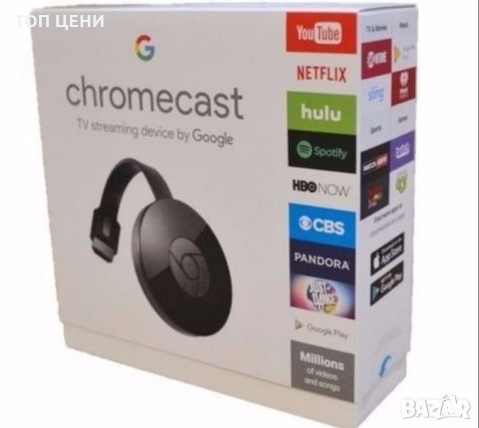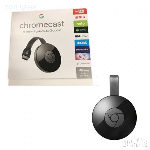Приемникът Chromecast, предава картина от телефон, таблет или лаптоп на екрана на телевизора. За използването му е нужно да се свърже към port USB на телевизора с помощта на кабела, включен в пакета, след което да се въведе във вход HDMI.