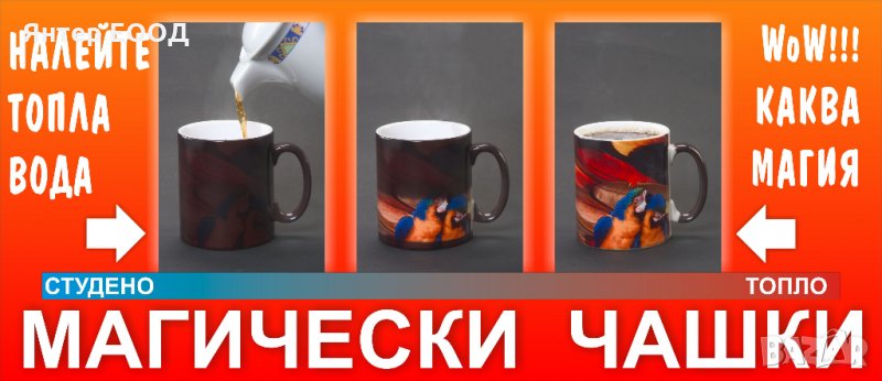 Магическите Фото Чаши са порцеланови и имат нанесен фотослой за пълноцветен траен печат.