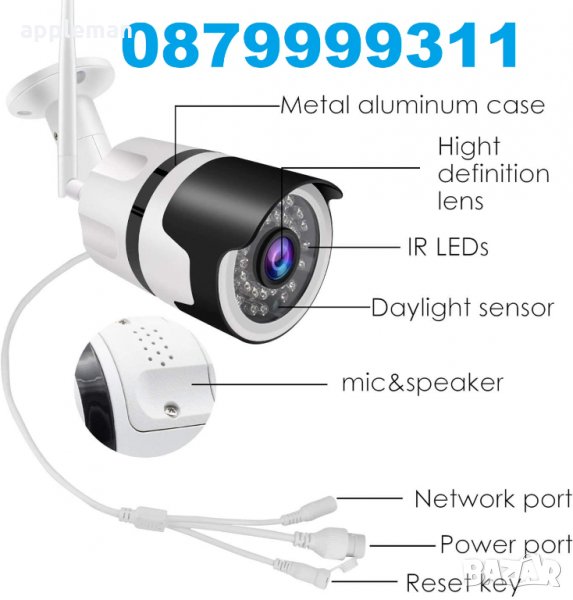 Ключови думи: Wireless IP WiFi Camera H.264 Onvif DVR NVR CMS TF Card Micro SD Smart Security IR Night iphone Vision Alarm Motion Detect Promo черен петък Промоция Видеокамера Smartphone waterproof bebefon dvr ohranitelna kamera пакет за видео наблюдение, комплект за видеонаблюдение, комплект за видео наблюдение, видеокомплект, видео комплекти, видеокамера, видео камера, видеокамери, видео камери. водоустойчива