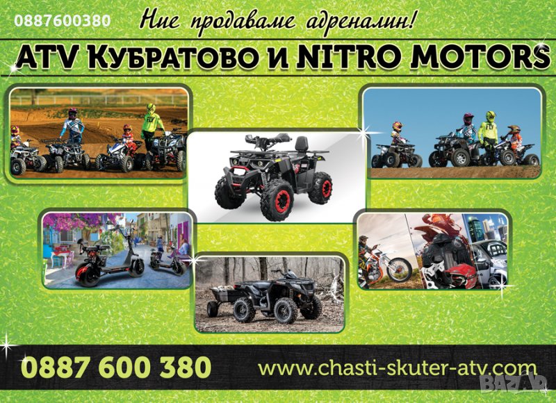 Тел.склад Кубратово АТВта.Новите МОДЕЛИ на бензиновите АТВта се различават както по дизайн така и с по-високо качество. АТВ КУБРАТОВО ви предлага богат АСОРТИМЕНТ от НАД 50 МОДЕЛА НАЛИЧНИ с покриване на всички възрастови категории 50сс, 110,125,150,200,250,300-350сс. на цени от 550лв до 4500 лв на ЕДРО и ДРЕБНО.Тел./Вайбър за коректен съвет и въпроси или законен ЕЛЕКТРОНЕН магазин:.chasti-skuter-atv. където ще имате възможност да разгледате всички наши модели въведени по отделно с цена и законни технически характеристики.