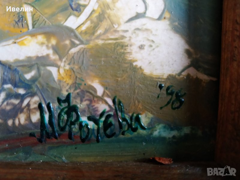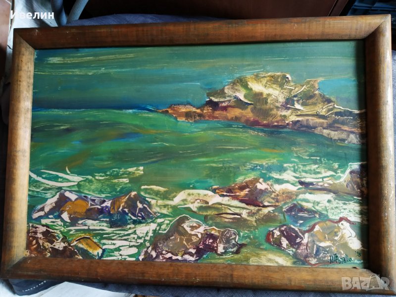 картина-пейзаж,масло на картон,подписана,датирана с размери 31см/49см,в дървена рамка с размери 37см/55см.
