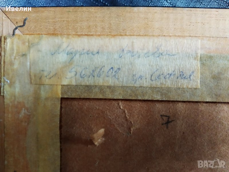 картина-пейзаж,смесена техника картон,надписана на гърбана с размери 38см/48см,в дървена рамка,със стъкло. размери 43см/53см.