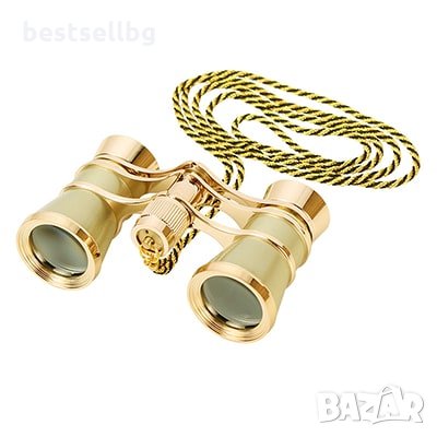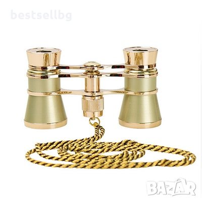 Елегантен и стилен театрален бинокъл с верижка за врата златист цвят за театър, опера, балет, други представления или за подарък с увеличение 3x25