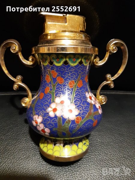 Газова запалка-месингов съд с клетъчен емайл. Височина-12см.