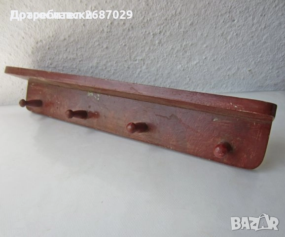 - Стара дървена закачалка с рафтче отгоре - 30 см дълга - 12 евро