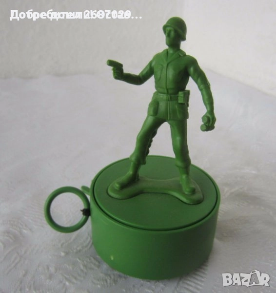- Играчка войник с пистолет и каска, Дисни, зелена, работи, пластмаса - 16 евро