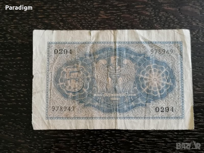 Банкнота - 5 лири от 1940г.